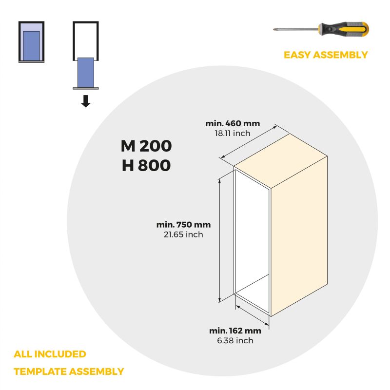 Conçu pour des meubles bas de cuisine de 200 mm de largeur, 800 mm de hauteur et 460 mm de profondeur minimale, ce porte-bouteilles se fixe facilement sur le côté gauche du meuble à l’aide du gabarit fourni. L’installation est simplifiée par la présence des vis de montage incluses, vous garantissant un résultat propre et professionnel. Fabriqué en acier résistant, il allie solidité, fonctionnalité et élégance pour transformer votre cuisine en un espace parfaitement organisé.