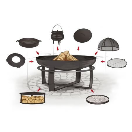 Ce braséro polyvalent peut servir de braséro barbecue CookKing, accueillir un couvercle pour un feu maîtrisé, ou simplement offrir une lumière agréable pour vos soirées.