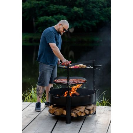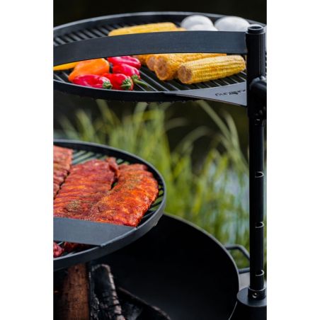 Cet ensemble de base se compose d'un brasero de jardin, d'une grille en acier et d'un support vertical. Avec une dimension d'environ Ø 50 cm la grille peut pivoter sur 160º, elle est ainsi réglable en hauteur. Le support est monté directement dans le pied du brasero. Grâce à une clenche d'ouverture soudée sur la poignée de grille vous pouvez lever la grille de cuisson ou la baisser à la hauteur souhaitée.