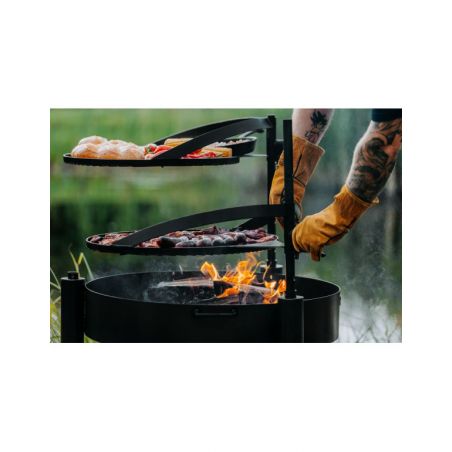 Nous vous recommendons des accessoires supplémentaires de notre offre qui sont compatibles avec l'ensemble de base. Il a trois options disponibles à votre choix : une grille de cuisson, une plaque de cuisson barbecue ou une poêle. Notre brasero de jardin permet de monter trois supports verticaux à la fois qui rendent ce dispositif facile à utiliser et polyvalent. De plus, dans notre offtre vous trouverez aussi des crochets durables pour accrocher une bouilloire ou un wok au-dessus du brasero. Si vous vous doterez de ces accessoires, vous disposerez d'une grande surface pour préparer plusieurs ingrédients en même temps.