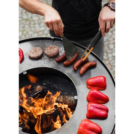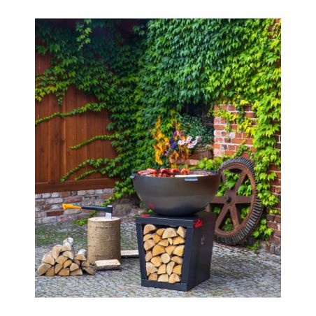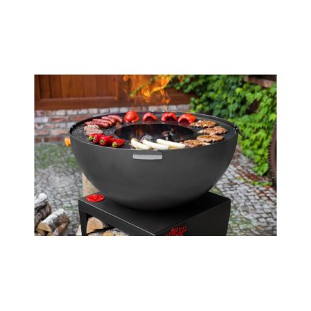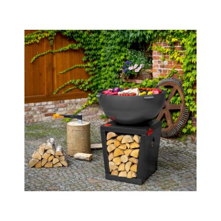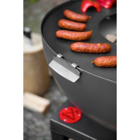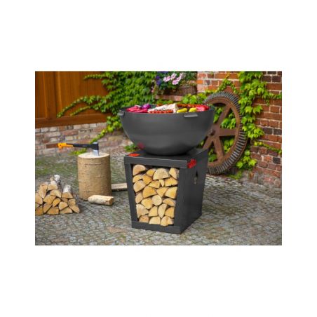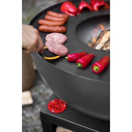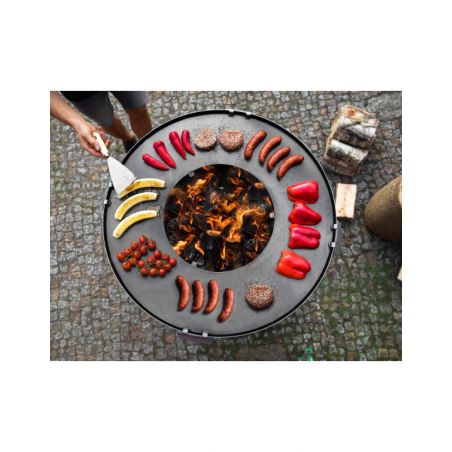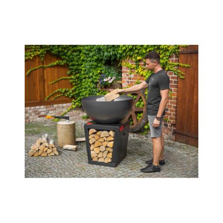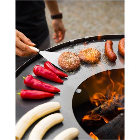 Le brasero «SANTOS» vous offre non seulement le plaisir de passer des soirées entre amis dans votre jardin, mais aussi il permet d'apporter beaucoup de chaleur et de préparer des grillades grâce à sa fonction brabecue. Ce brasero donnera un look moderne à votre jardin, terrasse ou patio. Toutes les pièces ont été soudées ensemble, cela a permis de créer un produit solide et stable. Ce produit unique est équipé d'une grande plaque de cuisson et le bol rond qui assure une circulation parfaite de l'air. La conception solide en acier confère à ce dispositif la meilleure qualité. La plaque de cuisson polyvalente offre une chaleur adaptée en fonction de vos besoins, que vous soyez en train de préparer des légumes, un steak délicat ou un uf brouillé, la température variera selon l'emplacement. De plus, le brasero possède un bûcher dans sa base, vous pouvez donc facilement ajouter du bois au feu.