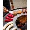 À noter : il faut conserver la plaque de cuisson avec de l'huile végétale avant, pendant et après l'utilisation du brasero pour maintenir son excellente efficacité. Le brasero barbecue «SANTOS» ne nécessite pratiquement aucun entretien : tout ce qu'il faut faire est d'essuyer la plaque de cuisson avec un chiffon humide pour qu'il soit prêt pour la prochaine utilisation. Tout le reste, comme l'excès d'huile, va directement au feu. Un autre avantage est qu'il peut également ouvrir de nouvelles possibilités pour une cuisine saine en plein air.