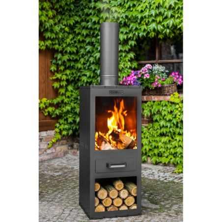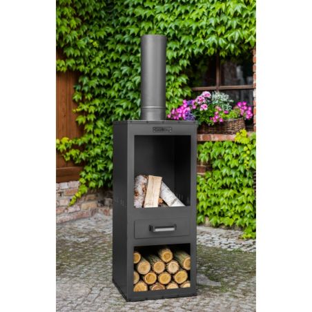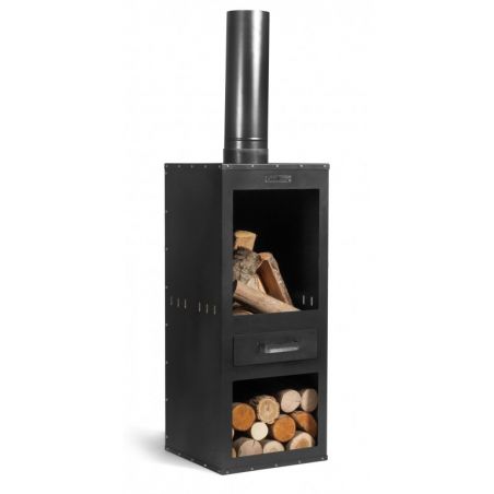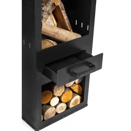 La structure entière est très stable et solide. Tous les éléments ont été soudés ensemble pour créer un produit incroyablement solide. De plus, le poêle-cheminée est équipé d'une cheminée qui assure une ventilation optimale de la fumée. Il possède aussi un rangement intégré pour les bûches de bois. Le bûcher protège le sol contre la chaleur excessive. Grâce aux poignées soudées sur les côtés de la base, la cheminée peut être facilement déplacée d'un endroit à un autre. La sortie de la cheminée construite au dessus du foyer protège contre la fumée. Le récupérateur de cendres inclus permet un nettoyage facile.