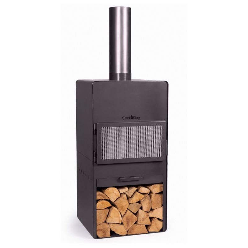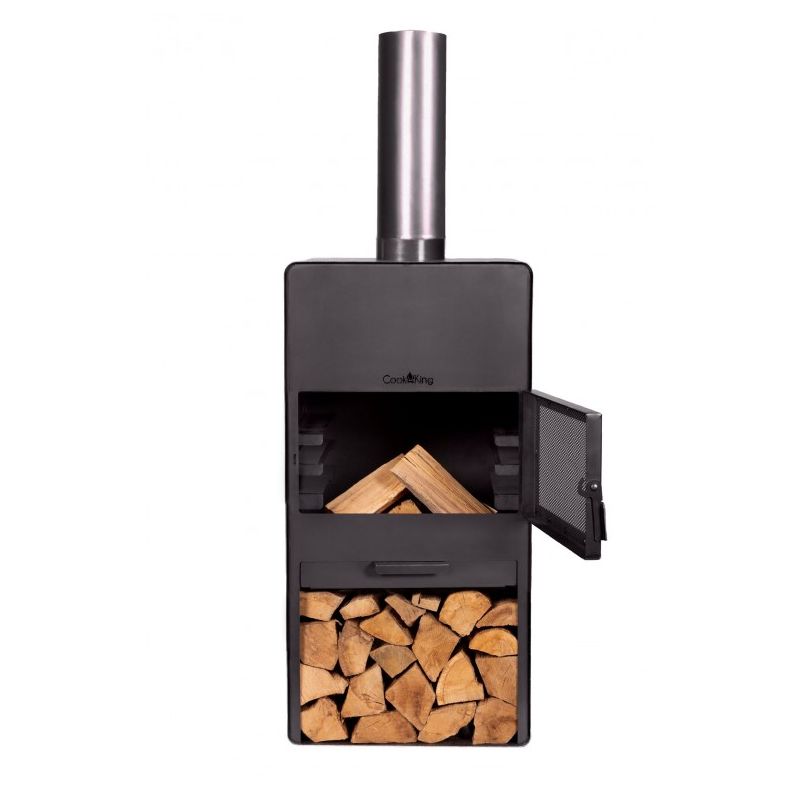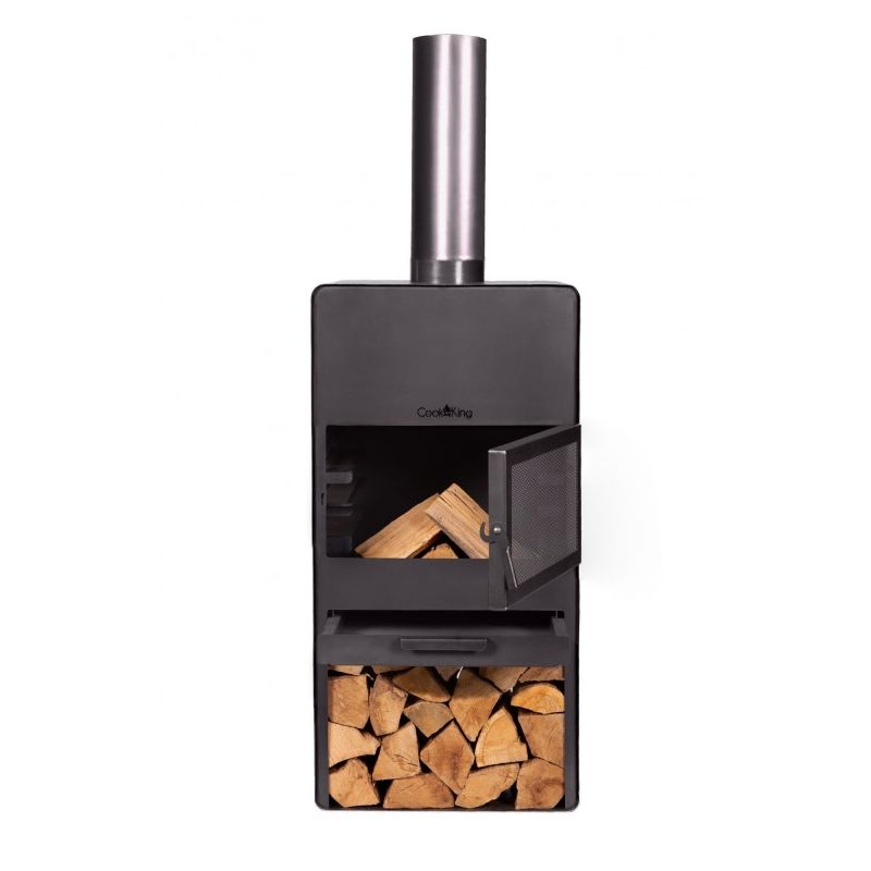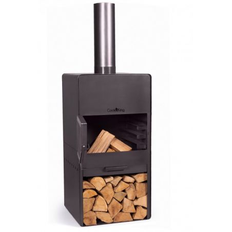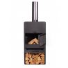 La cheminée est équipée d'un conduit de cheminée qui permet à la fumée de s'échapper pendant la combustion. Elle dispose également d'un rangement intégré pour stocker du bois en quantité importante. En outre, le rangement intégré protège le sol contre les températures élevées.
