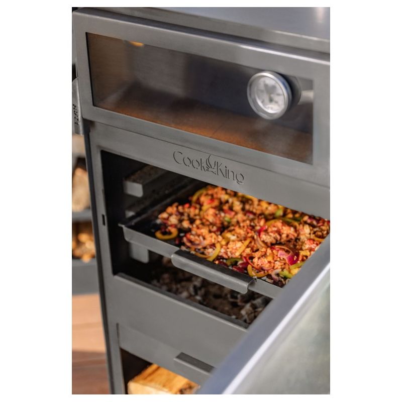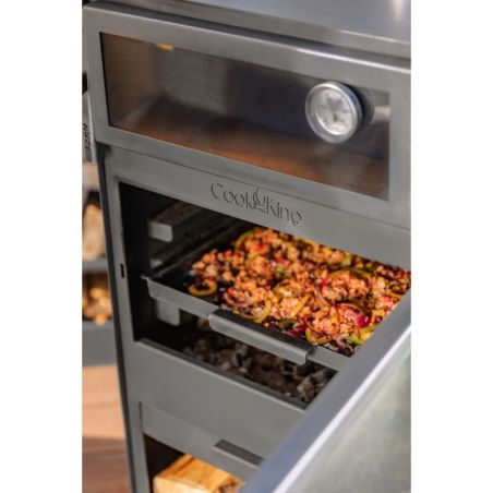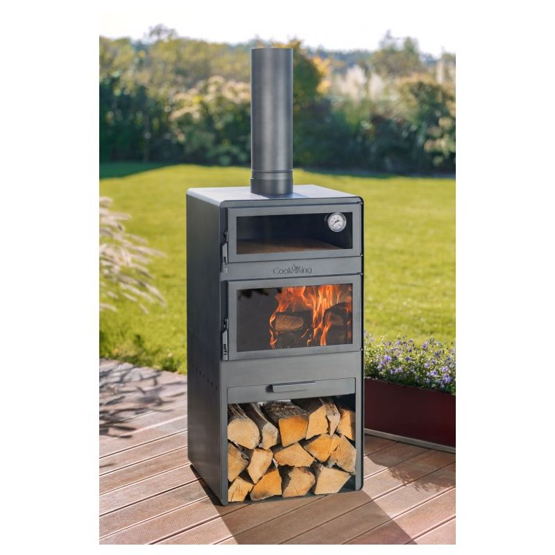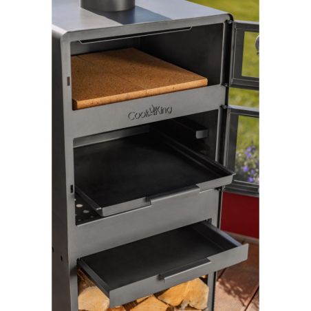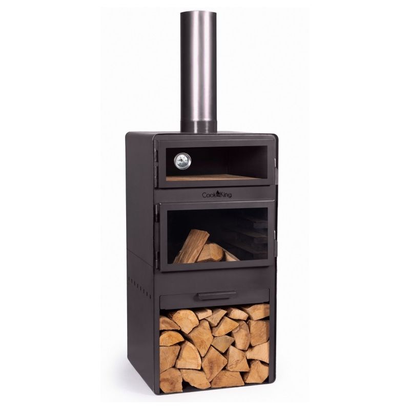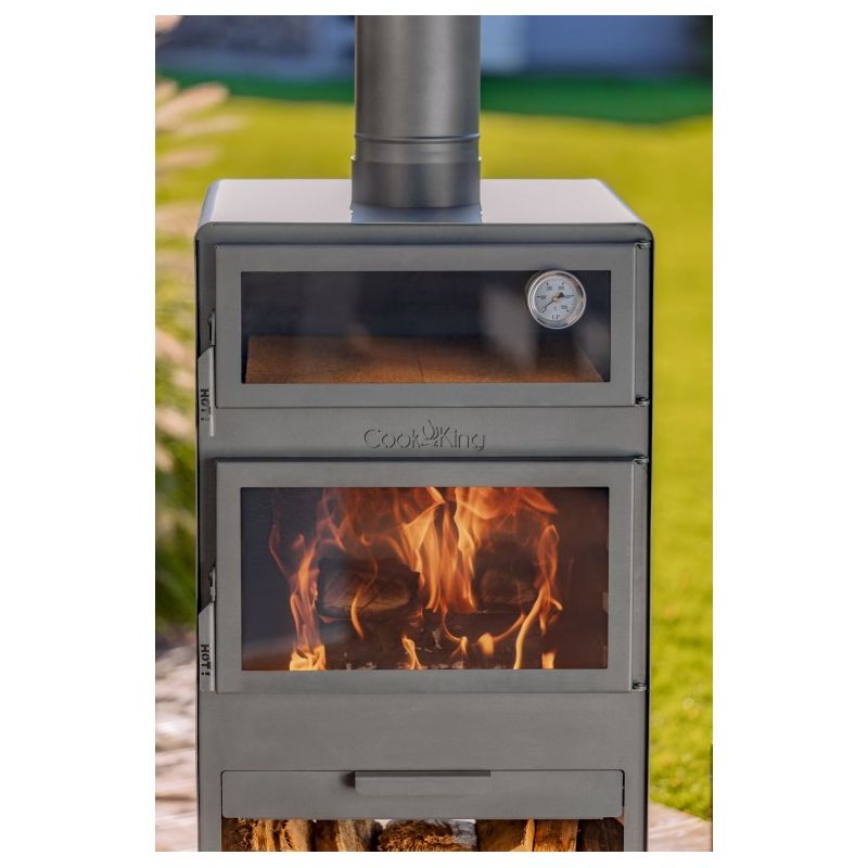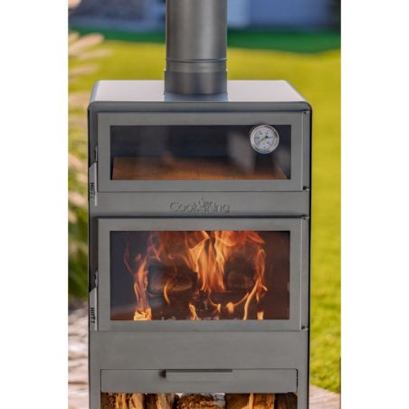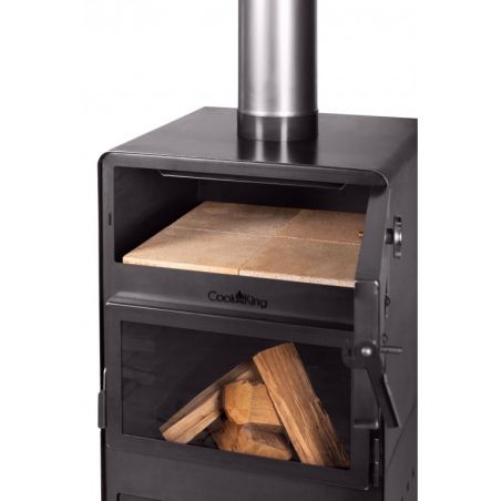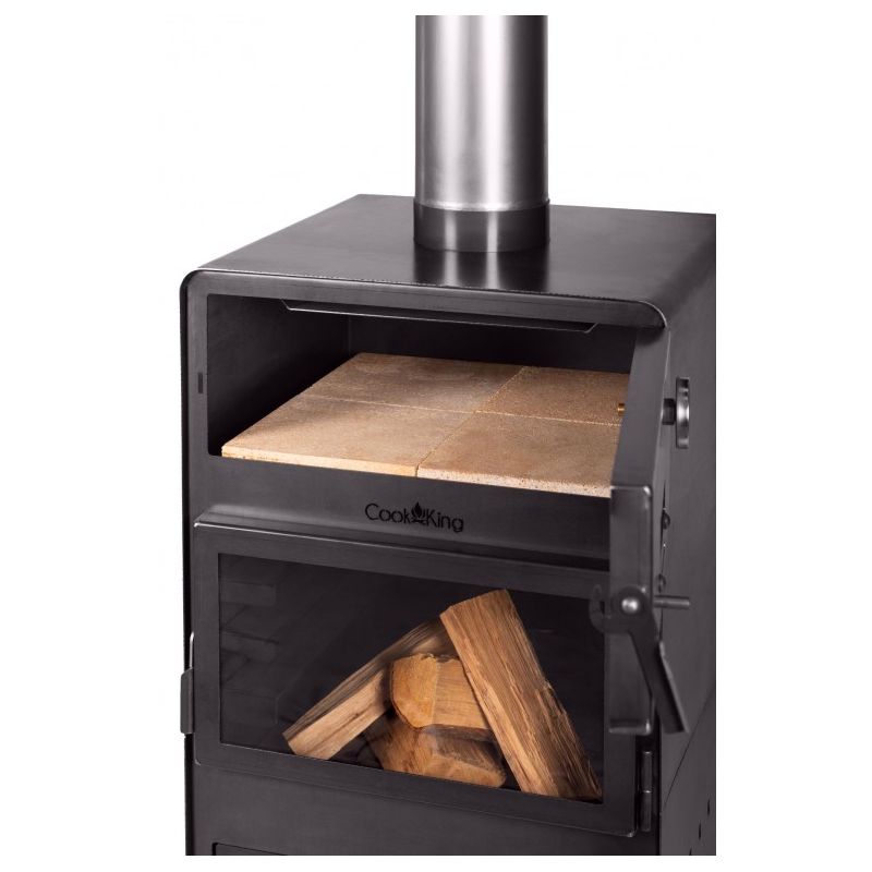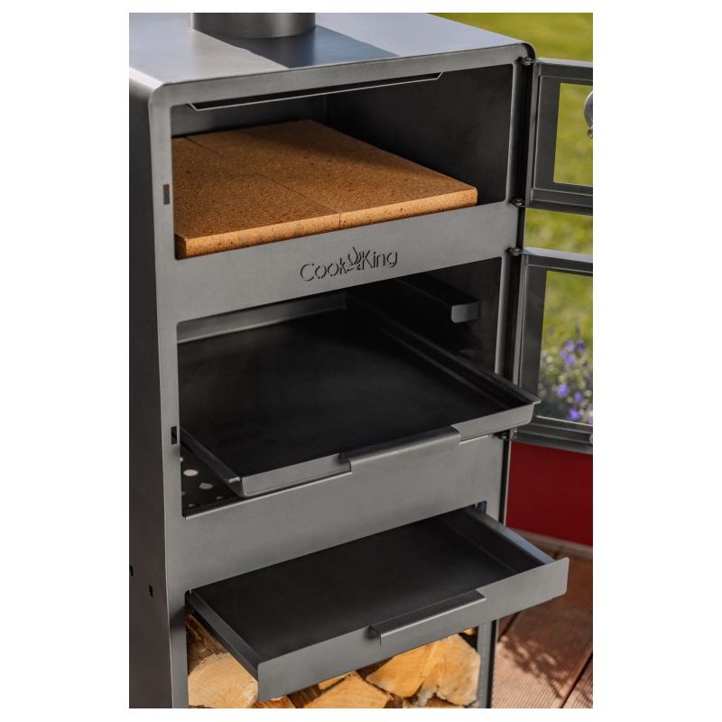 Dans la chambre supérieure du poêle se trouve un four pour la cuisson des plats. Un thermomètre est installé dans les portes du four, ce qui permet de contrôler la température de cuisson. Le four est revêtu à l'intérieur de briques réfractaires, permettant de cuire non seulement du pain ou de la pizza, mais aussi de nombreux autres plats tels que des poissons, des rôtis, des gâteaux ou des légumes. Les plats cuits dans le four à bois prennent l'odeur du bois brûlé, ce qui enrichit le goût et l'arôme des plats préparés. C'est une manière naturelle et la plus saine de préparer les repas.