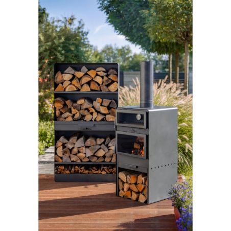 Cheminée d'extérieur «VENTO» avec four à pizza et vitres en verre trempé