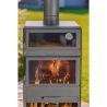 Le conduit d'évacuation des fumées, placé en hauteur, protège du passage de la fumée sur les personnes utilisant le produit. Un autre atout du poêle est le tiroir à cendres amovible qui facilite le nettoyage du foyer du four des cendres et des résidus de bois non brûlés.