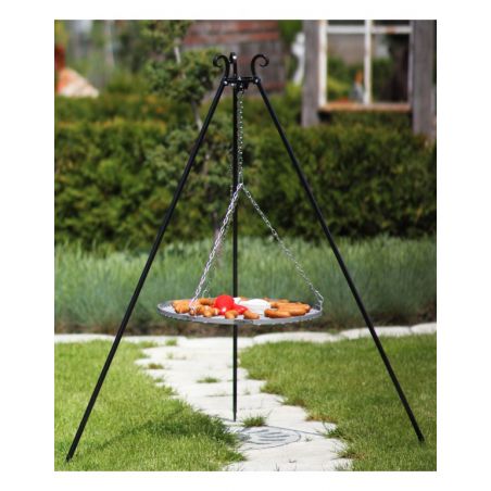 Une grille massive fabriquée de matières robustes vous servira parfaitement pour un grand repas. Le trépied stable peut être placé sur tout type de surface. Pour parfaire cet équipement en quelques gestes, le trépied est démonté et remonté, ce qui facilite le stockage et le transport. Des décorations avec des éléments forgés font de cette grille un plaisir pour la vue. Le réglage de la grille barbecue vous permet de changer sa hauteur facilement.