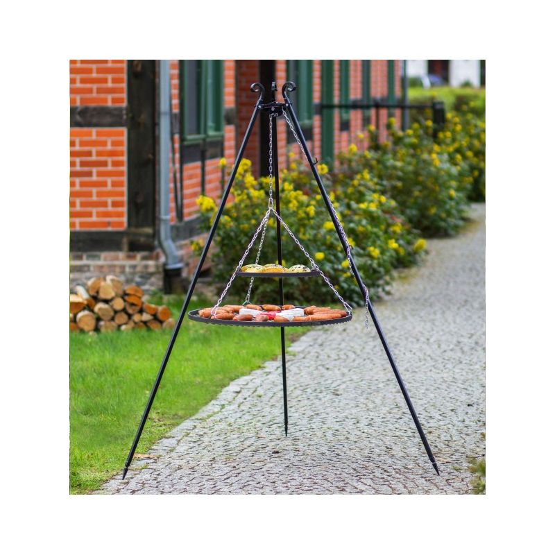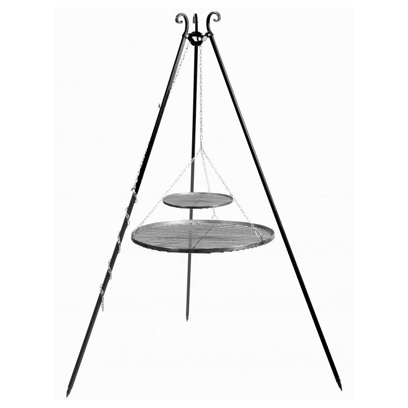 Trépied 180 cm avec 2 grilles en acier naturel de 80 cm et 40 cm