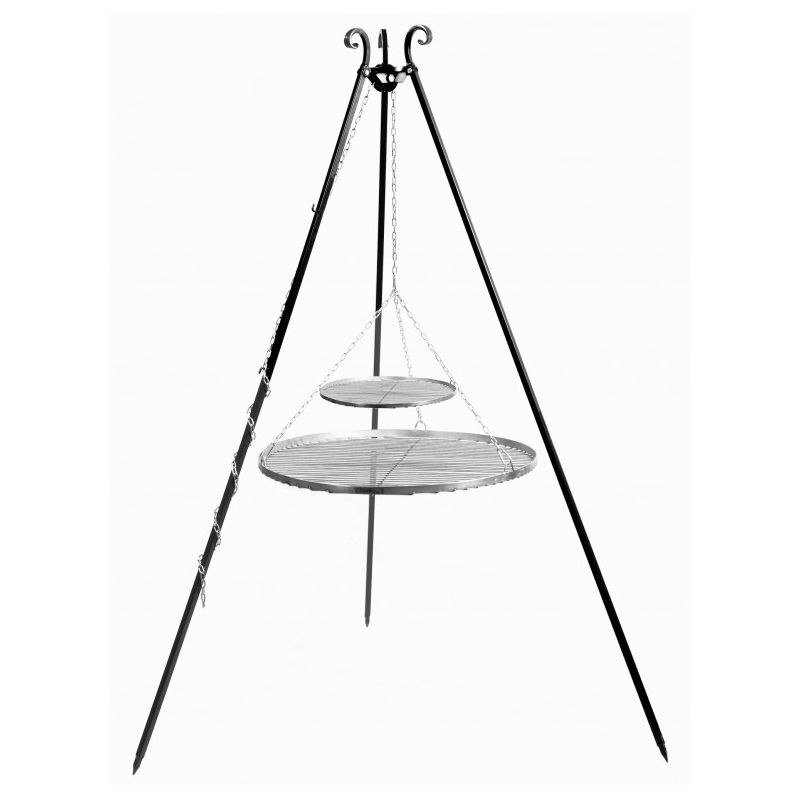 Trépied 180 cm avec 2 grilles en acier inoxydable de 80 cm et 40 cm