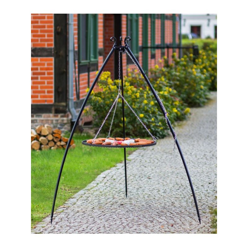 Une grille massive fabriquée de matières robustes vous servira parfaitement pour un grand repas. Le trépied stable peut être placé sur tout type de surface. Pour parfaire cet équipement en quelques gestes, le trépied est démonté et remonté, ce qui facilite le stockage et le transport. Des décorations avec des éléments forgés font de cette grille un plaisir pour la vue. Le réglage de la grille barbecue vous permet de changer sa hauteur facilement.