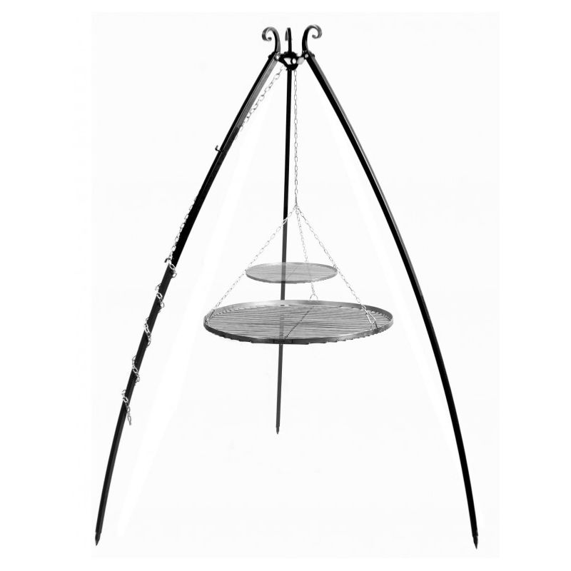 Trépied 200 cm avec 2 grilles en acier naturel de 80 cm et 40 cm