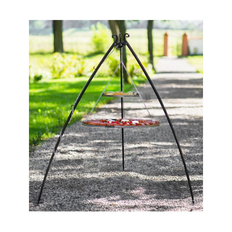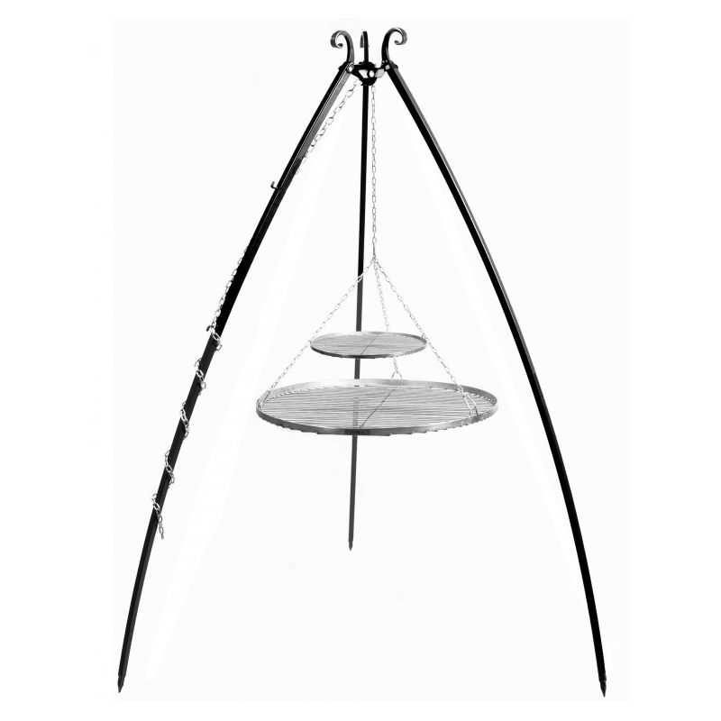 Trépied 200 cm avec 2 grilles en acier inoxydable de 70 cm et 40 cm
