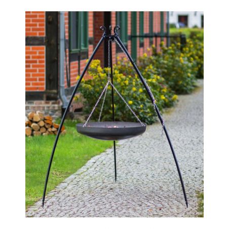 Lorsque on prépare un repas dans le jardin on peut remplacer une grille traditionnelle par un wok. Fabriqué de matières robustes, le wok est adapté pour le bois, ainsi que pour le charbon de bois. Il est composé dun corps arrondi à bords hauts, sa grande surface de cuisson servira donc parfaitement pour un grand repas. Le trépied d'une hauteur de 200 cm est revêtu de poudre, ce qui crée une protection résistante aux intempéries. Sa construction stable permet de le placer sur tout type de surface. Pour parfaire cet équipement en quelques gestes, le trépied est démonté et remonté, ce qui facilite le stockage et le transport. Des décorations avec des éléments forgés font de ce wok un plaisir pour la vue. Le réglage du wok vous permet de changer sa hauteur facilement. Grâce à ce produit, vous pouvez préparer tous types de plats à base de viande, de poisson et de légumes, des gratins et même un uf brouillé.