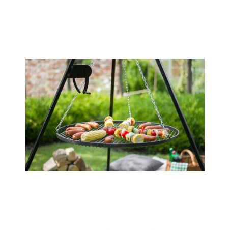 La grille barbecue de jardin à trépied est une solution idéale pour passer des soirées agréables à l'extérieur entre amis. Elle est fabriquée en acier de 180 cm de hauteur. La tôle est adaptée pour le bois, ainsi que pour le charbon de bois. Le trépied est revêtu de poudre, ce qui crée une protection résistante aux intempéries. Grâce à son moulinet, le trépied permet de lever la grille de cuisson ou de la baisser selon la cuisson. Le moulinet est composé d'un crochet extra durable afin d'empêcher de glisser la chaîne, ce qui assure une utilisation secure d'une grille. Le trépied stable peut être placé sur tout type de surface. Pour parfaire cet équipement en quelques gestes, le trépied est démonté et remonté, ce qui facilite le stockage et le transport. Des décorations avec des éléments forgés font de cette grille un plaisir pour la vue. Le réglage de la grille barbecue vous permet de changer sa hauteur facilement.