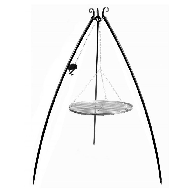 Trépied de 200 cm avec grille en acier inoxydable 60 cm et treuil