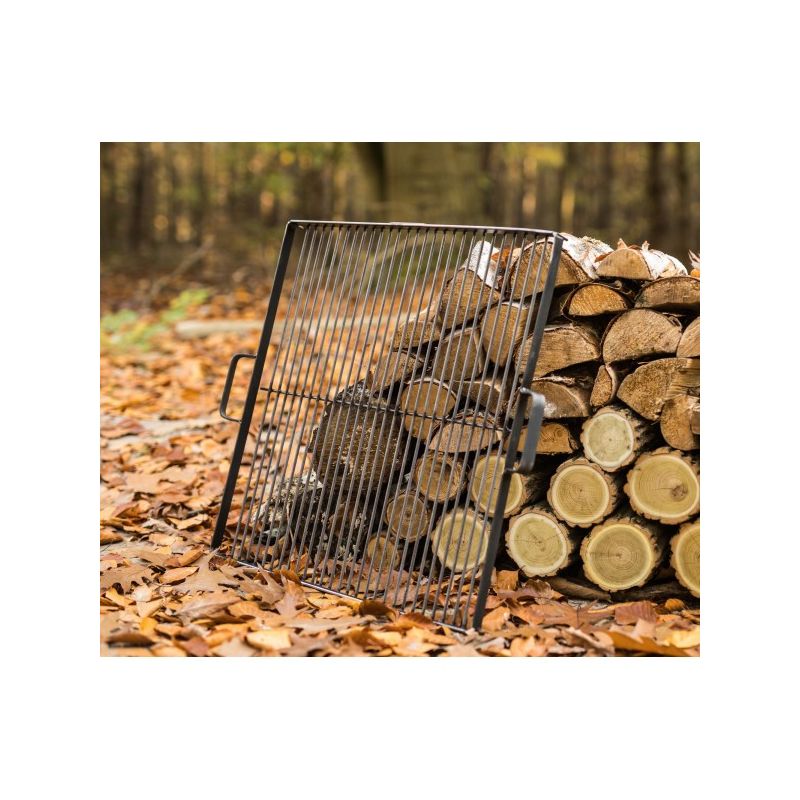 La grille carrée possède une grande surface de cuisson, elle est fabriquée d'un acier durable et résistant à la chaleur. Les deux poignées soudées vous permettent d'installer et de retirer facilement la grille selon les besoins. La fonction principale de cette grille est une possibilité de la placer directement sur tous nos braseros Cook King, elle ne nécessite pas de trépied.