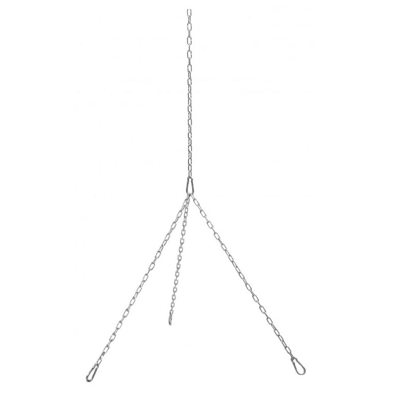 Ensemble de chaînes et mousquetons galvanisés résistants à la corrosion qui sert à accrocher une grille de cuisson, une bouilloire ou un wok sur le trépied de la collection COOK KING.