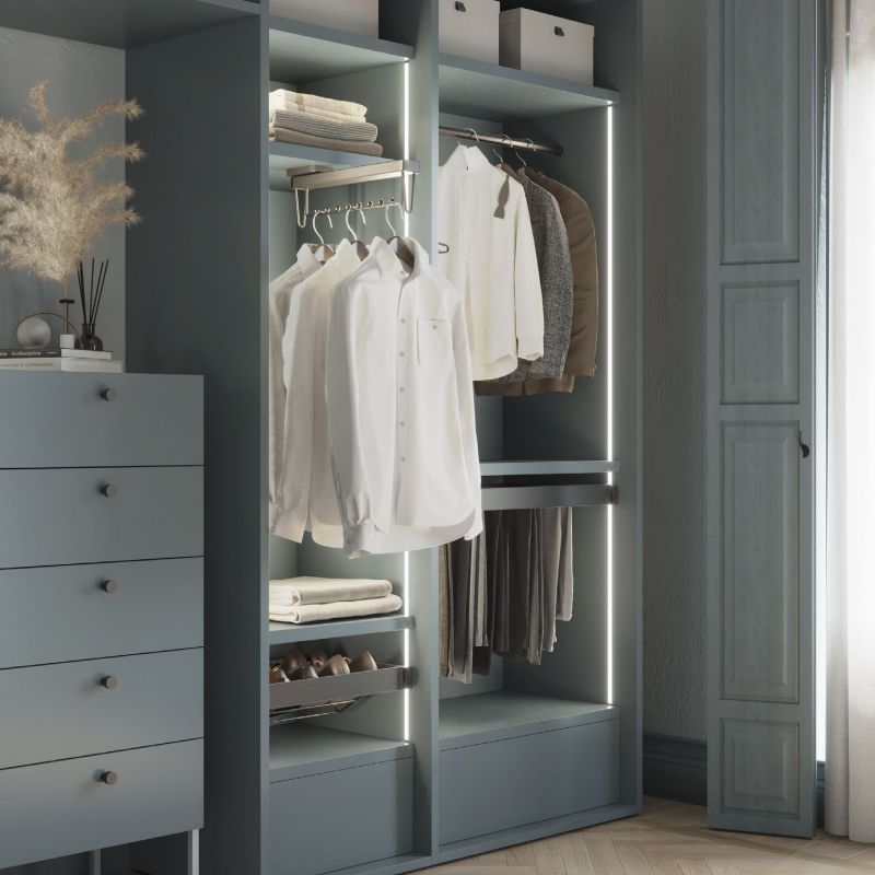 Pratique et polyvalent, ce kit est disponible en plusieurs longueurs et finitions pour s’adapter à tous les styles et besoins : Moka, Noir, Anodisé mat ou Titane. Il permet de créer un espace de rangement optimisé tout en apportant une finition esthétique et professionnelle à votre dressing. Que vous recherchiez un aménagement fonctionnel ou un look harmonieux pour vos armoires, le kit de penderie EMUCA répond à toutes vos attentes.