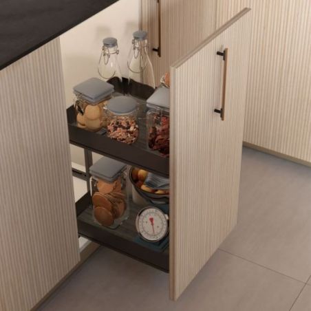 Le chariot coulissant Harmony d'Emuca est la solution parfaite pour tirer le meilleur parti de l'espace disponible dans les meubles de cuisine. Cet accessoire maximise la capacité de rangement tout en offrant une solution élégante et pratique.