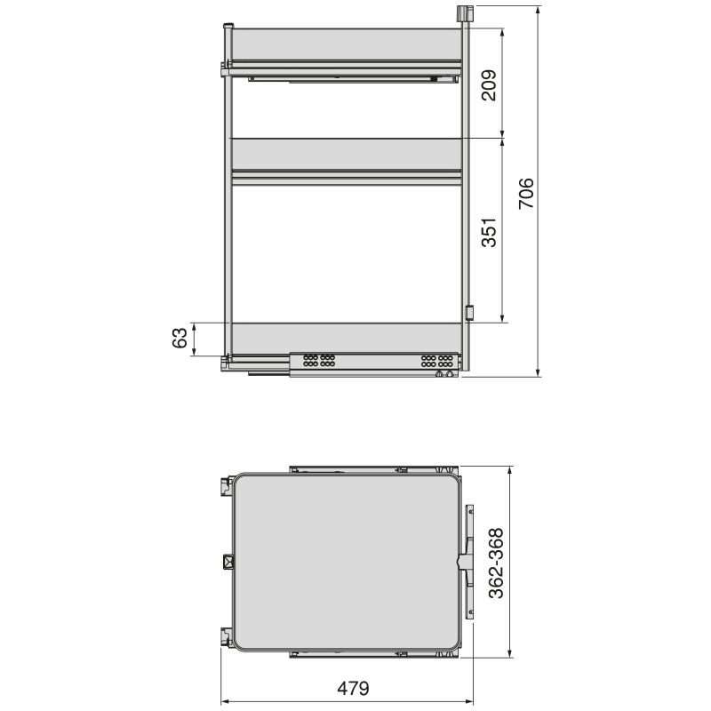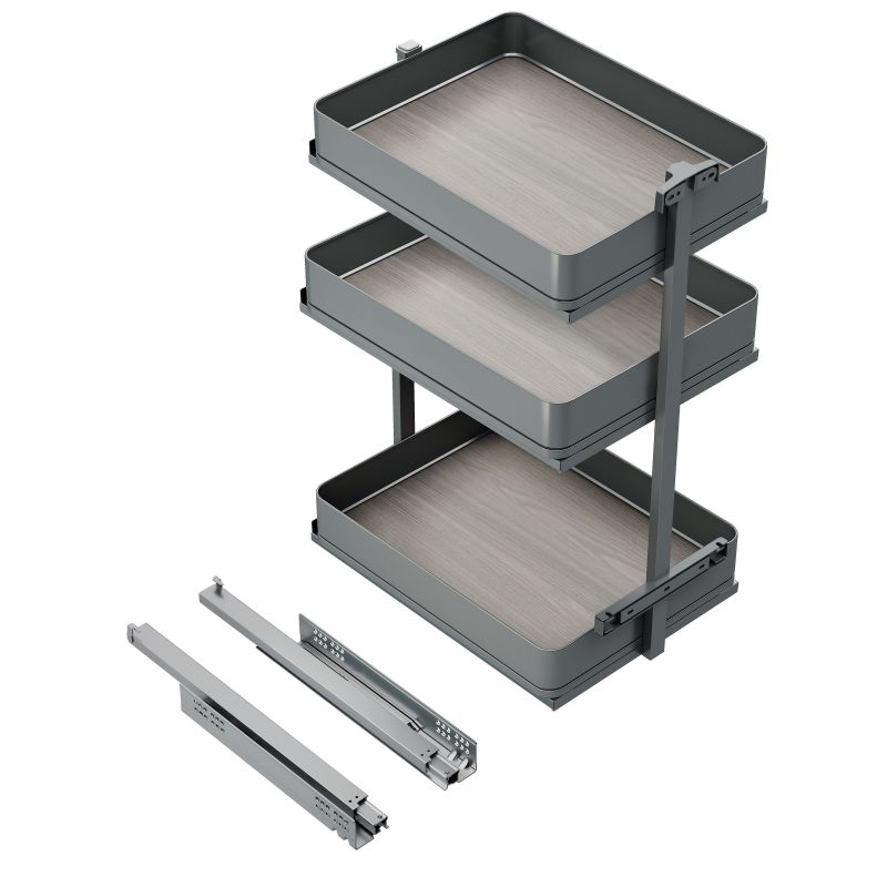 Chariot coulissant 3 paniers Harmony avec amortisseur, pour meuble de 400mm, Hauteur 800mm, Anthracite
