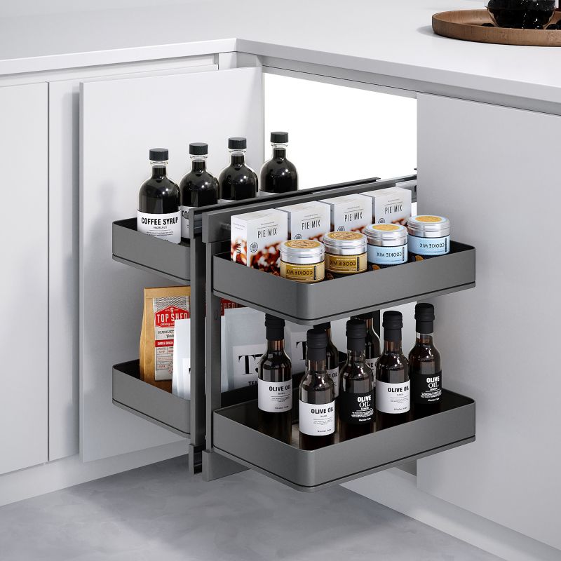 En savoir plus ...Le système de 2 plateaux pivotants extractible pour meuble d'angle de la gamme Harmony de la marque Emuca est la solution parfaite pour optimiser l'espace dans les meubles d'angle de la cuisine et faciliter l'accès aux ustensiles, aliments ou petits appareils électroménagers.