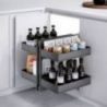 Il dispose de deux plateaux indépendants avec fermeture douce et réglables en hauteur, chacun avec une capacité de charge de 20 kg (2 x 20 kg), idéal pour exploiter au maximum l'espace dans les meubles de cuisine.