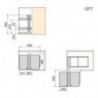 Il est conçu pour être facilement installé dans des modules dune largeur minimale de 862 mm, dune profondeur minimale de 500 mm et dune hauteur réglable de 700 à 800 mm. Convient pour des panneaux de 16, 18 ou 19 mm d'épaisseur. Il est recommandé de monter la porte avec des charnières à bras 90º ou des charnières droites.