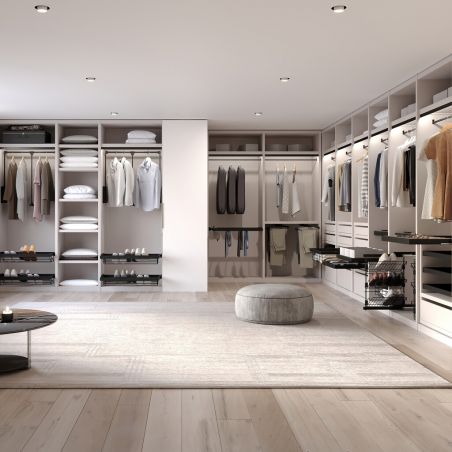Au quotidien, ce cadre offre un confort d’utilisation supérieur grâce à ses coulisses à fermeture douce et à extraction partielle qui permettent une ouverture fluide et silencieuse. Cette technologie évite les chocs lors de la fermeture et rend l’accès aux vêtements plus agréable, tout en préservant le meuble dans le temps. L’installation est pensée pour être simple et rapide : le cadre est préassemblé et les coulisses se clipsent sans outil, ne nécessitant que quelques vis pour être fixées sur le côté de l’armoire.